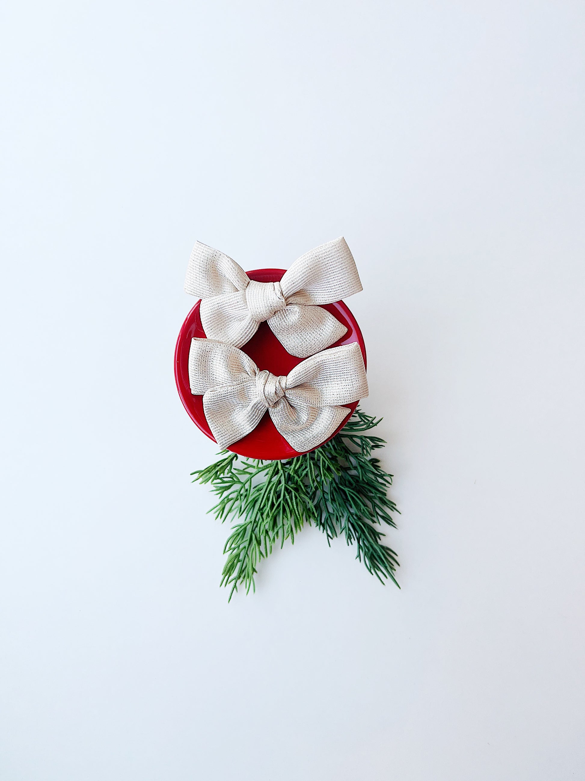 Our Collaboration with Lauren Thompson captures the spirit of Christmas in a beautiful, one of a kind collection! Featuring bows of pale blue, red plaid, and sparkling gold, these bows bring a chic seasonal touch to any hairstyle. Perfect for everything from family holiday parties to meeting Santa, these versatile bows will elevate your look all season long. Add a pop of holiday charm to your wardrobe with these stunning, Christmas-inspired accessories!