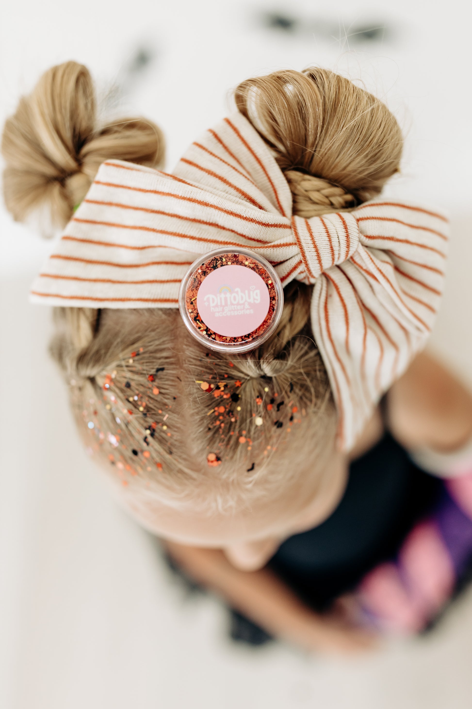 Our colorful glitters are handmade with high quality, unscented gel and bright glitter your children (and you!) will love. Look no further for a girl’s hair glitter that goes on smooth and isn’t crunchy when it dries! Safe to use on hair.