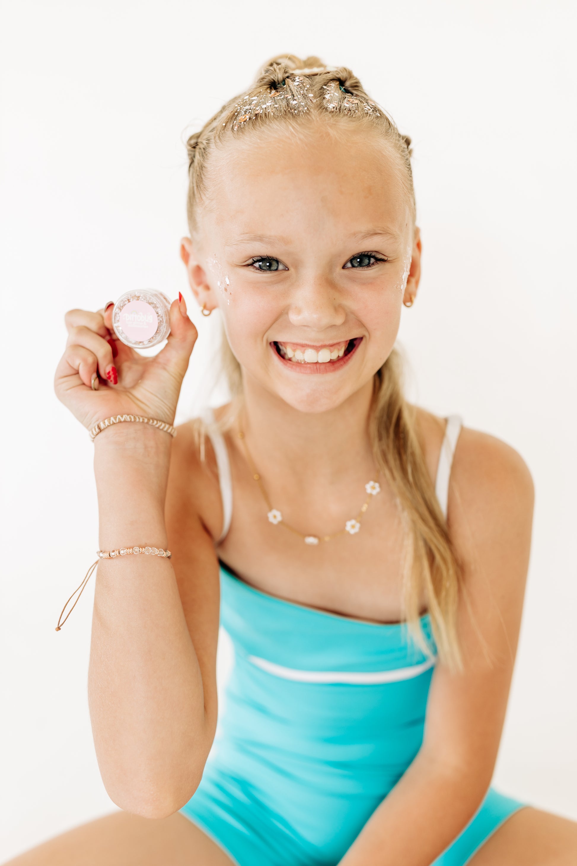 Our colorful glitters are handmade with high quality, unscented gel and bright glitter your children (and you!) will love. Look no further for a girl’s hair glitter that goes on smooth and isn’t crunchy when it dries! Safe to use on hair.