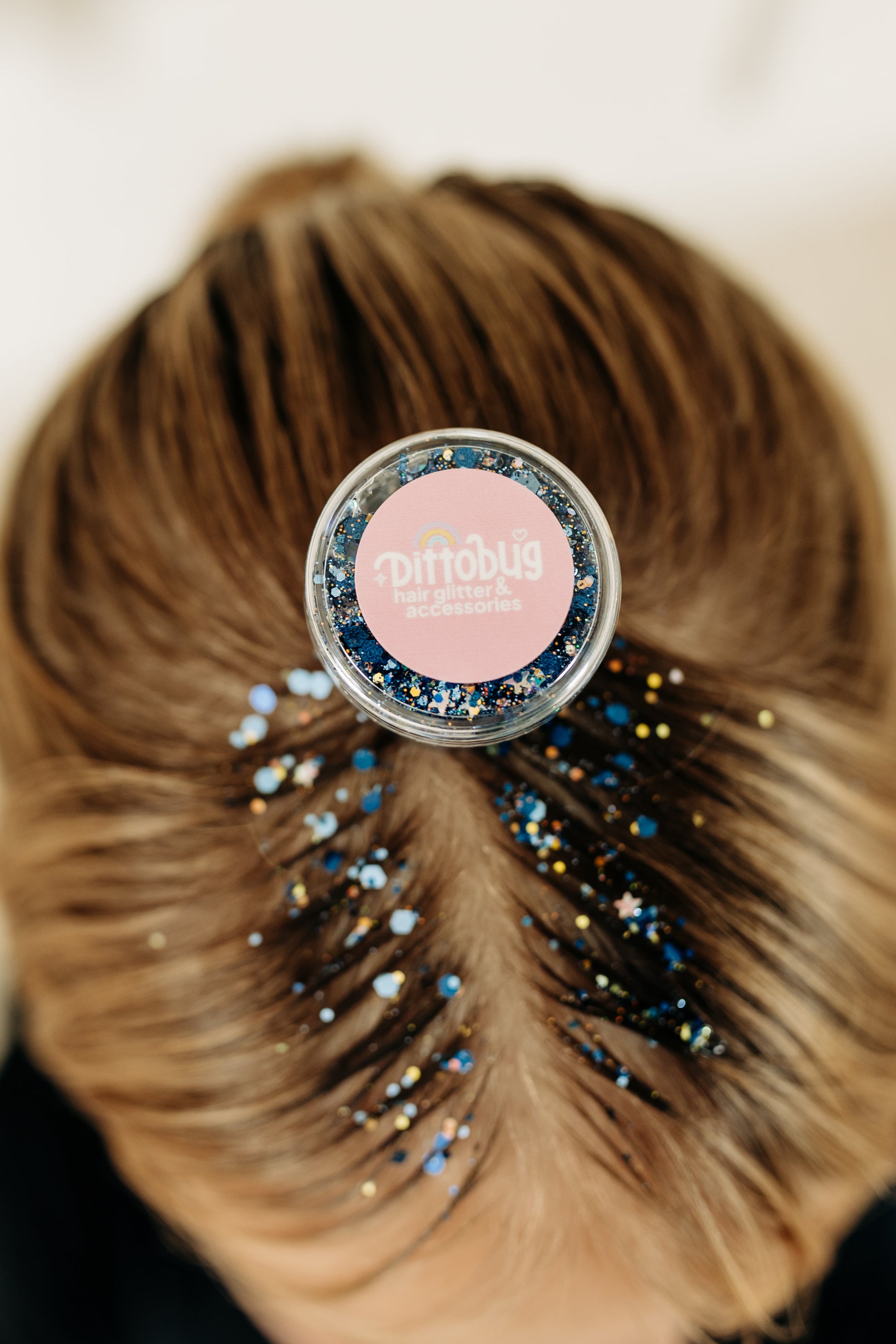 To Apply: Use a small makeup brush or your finger to apply an even layer of glitter to hair. Spray a light layer of hairspray on top to set, if desired. To remove, brush hair and wash with your favorite shampoo!