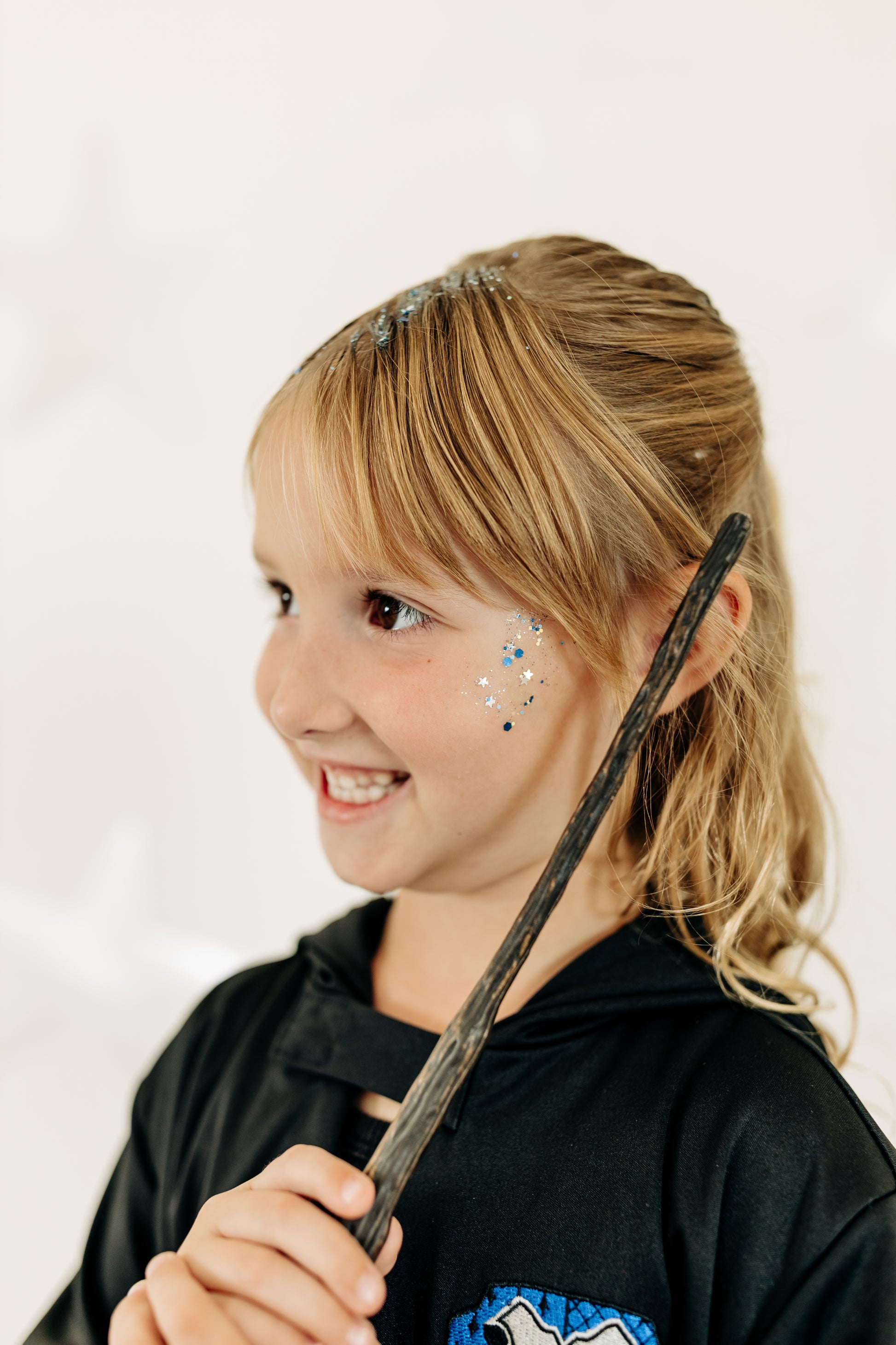 Our colorful glitters are handmade with high quality, unscented gel and bright glitter your children (and you!) will love. Look no further for a girl’s hair glitter that goes on smooth and isn’t crunchy when it dries! Safe to use on hair.
