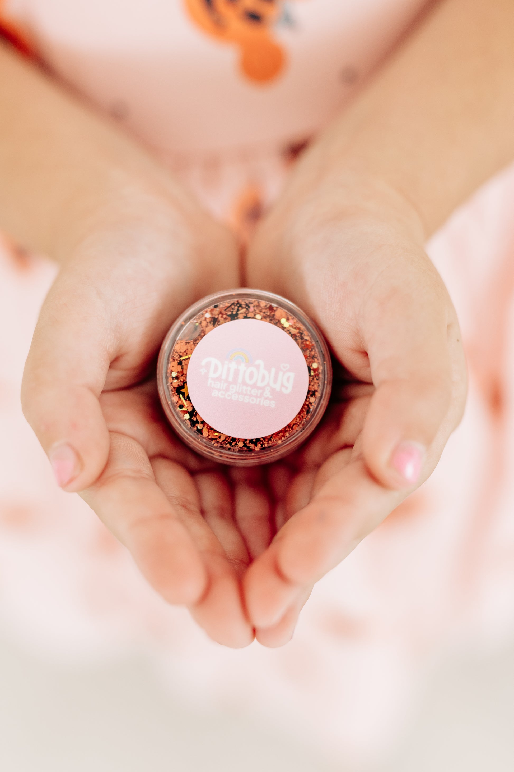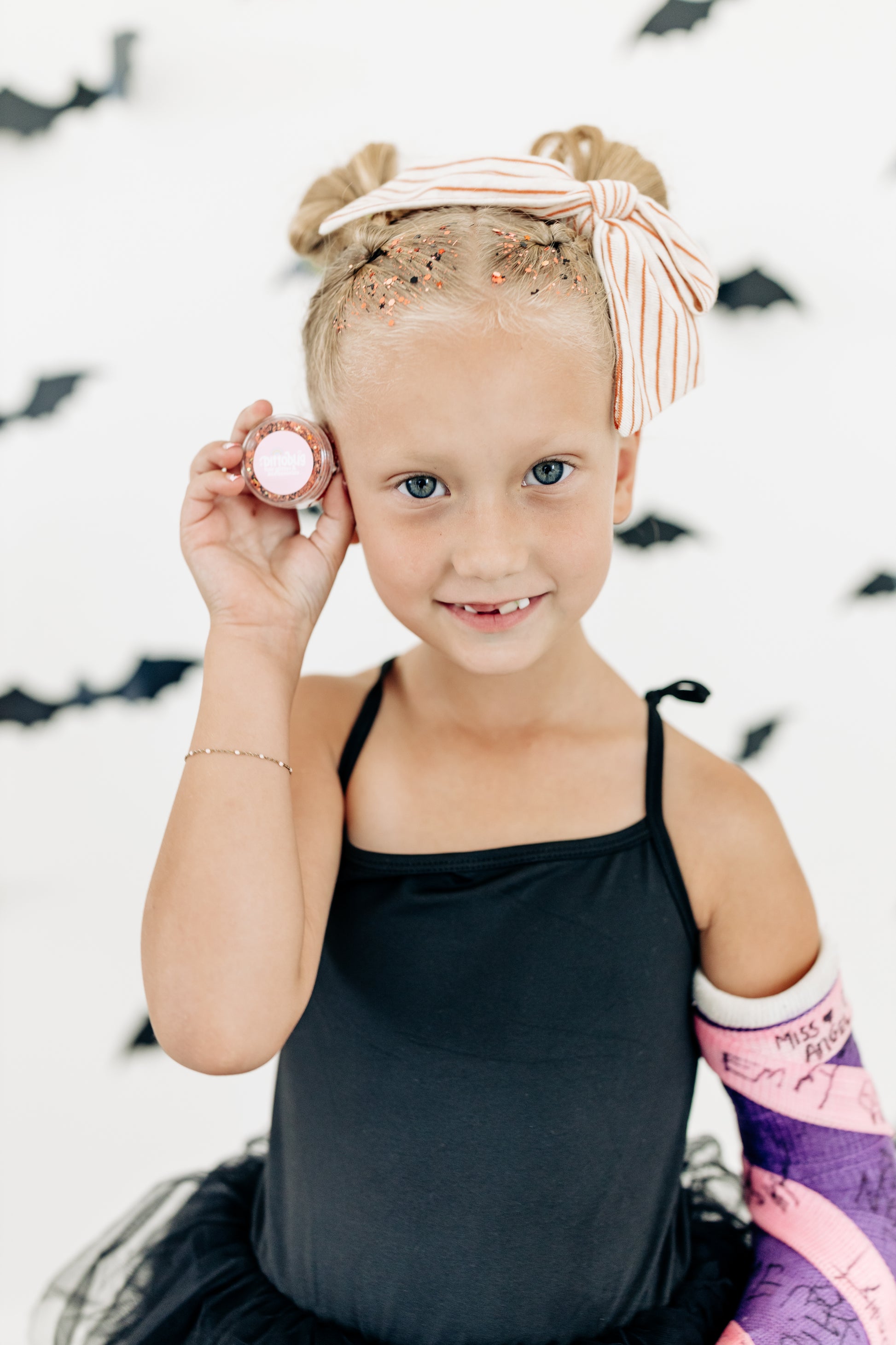 Our colorful glitters are handmade with high quality, unscented gel and bright glitter your children (and you!) will love. Look no further for a girl’s hair glitter that goes on smooth and isn’t crunchy when it dries! Safe to use on hair.