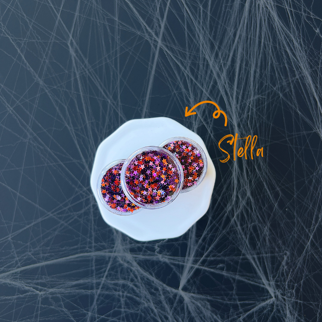 Reach for the stars ✨ This cosmic blend of orange, purple, and black stars with fine purple glitter feels like a Halloween night sky in a jar. Magical, twinkly, and totally spellbinding.