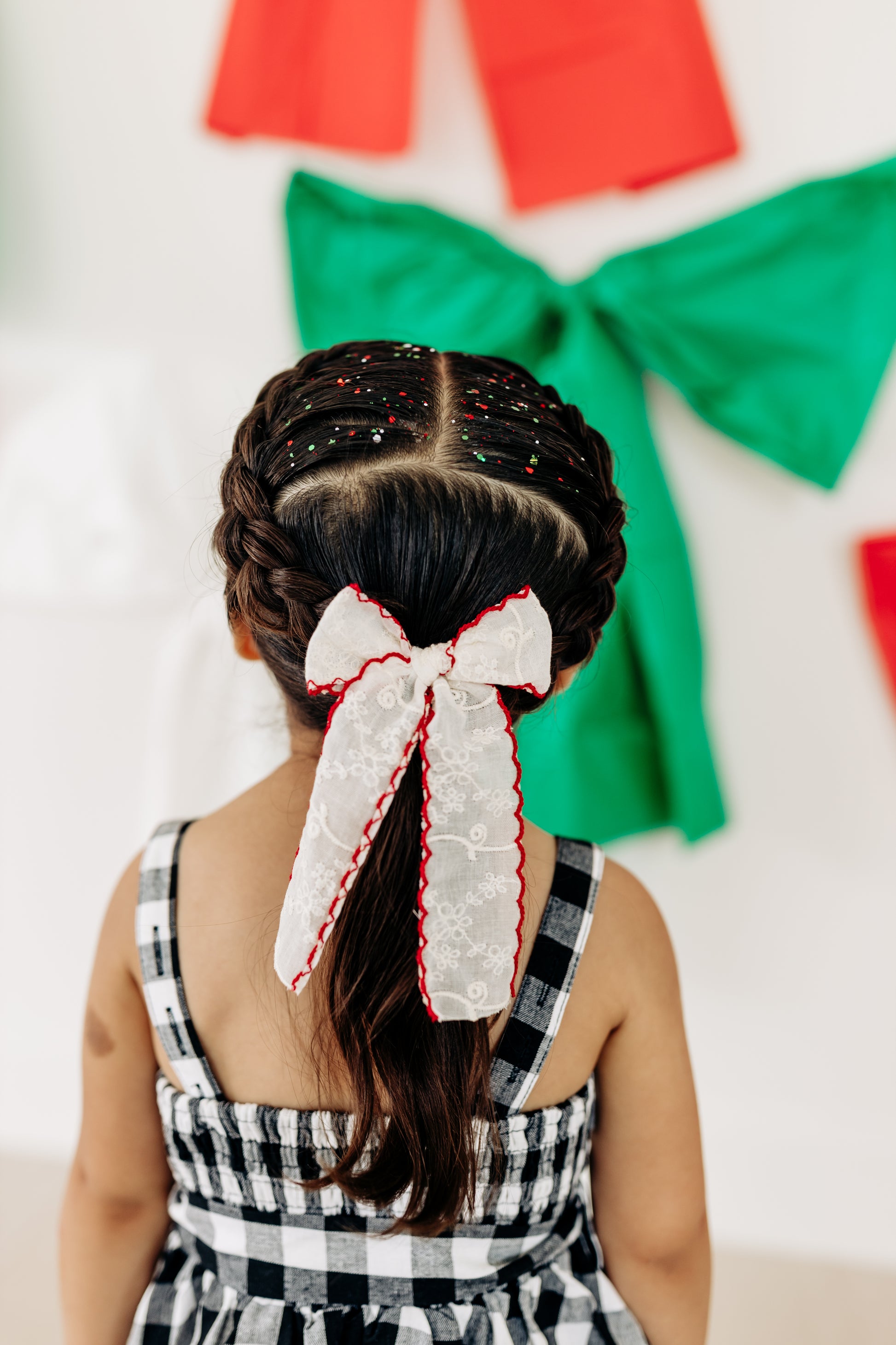 Crisp white with dainty red stitching — the sweetest touch of holiday charm. Simple, elegant, and beautifully festive.